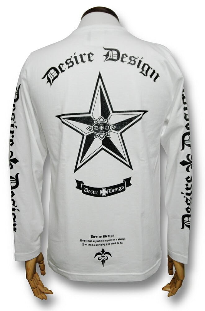 ノーティカルスター 星 長袖 Tシャツ 白 Desire Design ディザイア・デザイン ロンT メンズ レディース ロック バイカー系 ロックTシャツ バンドTシャツ DTL-04WH | alternative_tokyo
