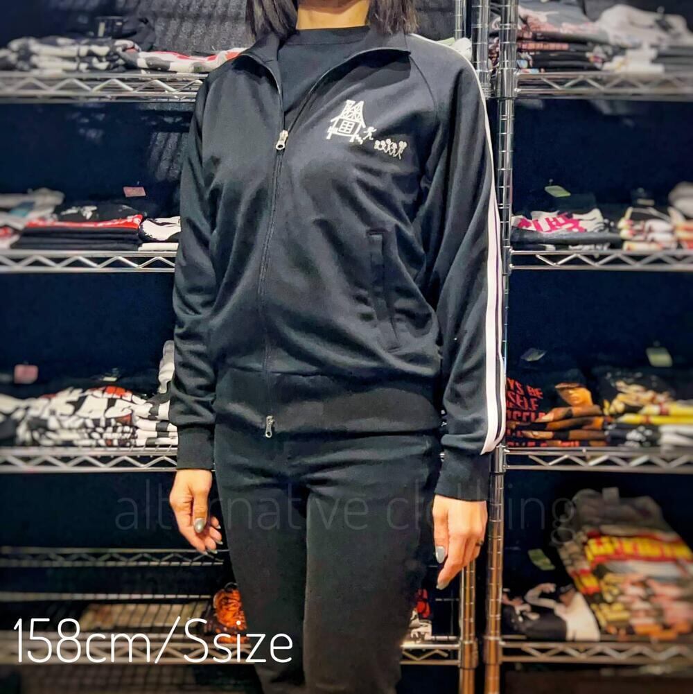 踊る猫 ジャージ タマダンス ホワイトプリント ダブルスライダー ブラック 黒 ジップアップ パロディ メンズ レディース ドクロ 秋冬 レディース おもしろ かわいい ロックT バンドT プレゼント shj-04cwh | alternative_tokyo